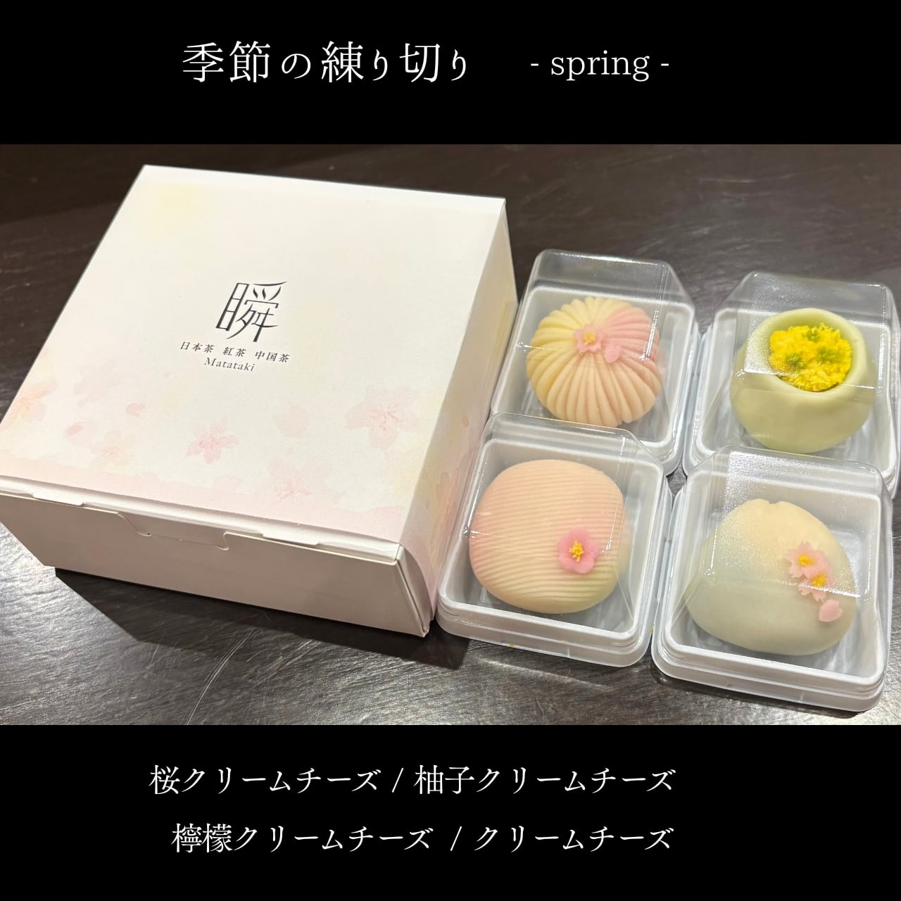 Matataki-瞬特製練り切り、今回の季節の練り切りの中餡は以下の通り4種類を詰め合わせしています。